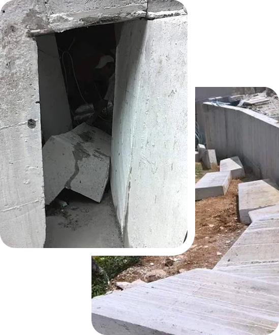 Εξειδικευόμαστε σε κοπές για ανοίγματα πορτών και παραθύρων, σκάλες, ασανσέρ, καμινάδες, τζάκια, καθώς και σε καθαιρέσεις μπαλκονιών, οροφών και λιθοδομών. Η εργασία μας χαρακτηρίζεται από ακρίβεια, ελάχιστο θόρυβο και περιορισμένη σκόνη.